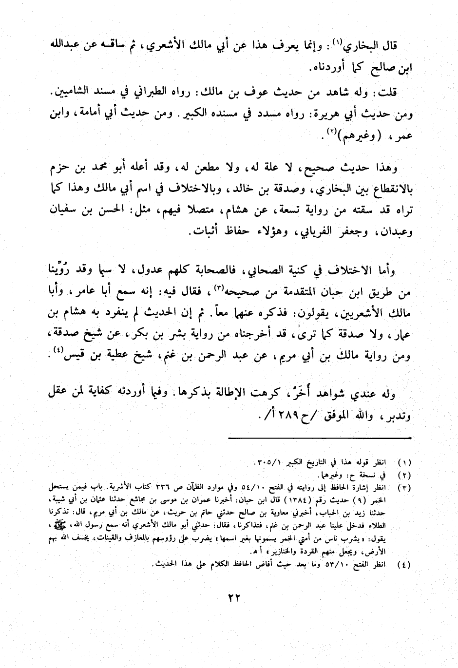 وَهَذَا حَدِيث صَحِيح لَا عِلّة لَهُ وَلَا مطْعن لَهُ وَقد أعله أَبُو مُحَمَّد بن حزم بالانقطاع بَين البُخَارِيّ وَصدقَة بن خَالِد وبالاختلاف فِي اسْم أبي مَالك وَهَذَا كَمَا ترَاهُ قد سقته من رِوَايَة تِسْعَة عَن هِشَام مُتَّصِلا فيهم مثل الْحسن بن سُفْيَان وعبدان وجعفر الْفرْيَابِيّ وَهَؤُلَاء حفاظ أثبات