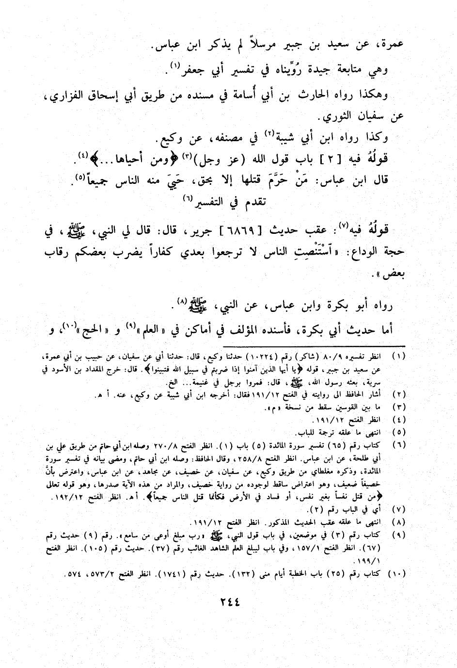 عقب حَدِيث 6869 جرير قَالَ قَالَ لِي النَّبِيُّ صَلَّى الله عَلَيْهِ وَسلم فِي حجَّة الْوَدَاع استنصت النَّاس لَا ترجعوا بَعْدِي كُفَّارًا يَضْرِبُ بَعْضُكُمْ رِقَابَ بعض