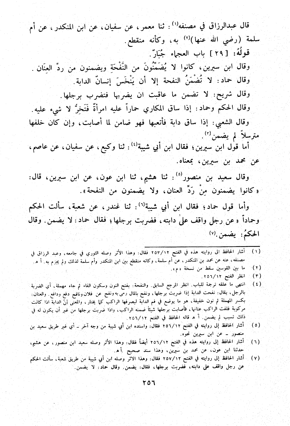وَقَالَ سعيد بن مَنْصُور ثَنَا هشيم ثَنَا ابْن عون عَن ابْن سِيرِين قَالَ كَانُوا يضمنُون من رد الْعَنَان وَلَا يضمنُون من النفحة
