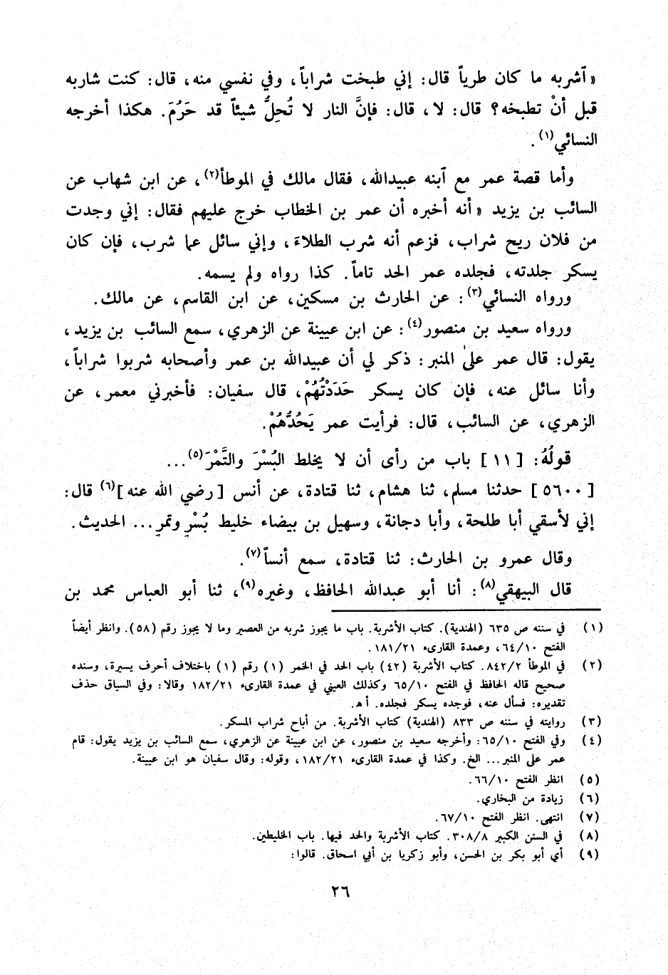 وَأما قصَّة عمر مَعَ ابْنه عبيد الله فَقَالَ مَالِكٌ فِي الْمُوَطَّأِ عَنْ ابْنِ شِهَابٍ عَنِ السَّائِبِ بْنِ يَزِيدَ أَنَّهُ أَخْبَرَهُ أَنَّ عُمَرَ بْنَ الْخَطَّابِ خَرَجَ عَلَيْهِمْ فَقَالَ إِنِّي وَجَدْتُ مِنْ فُلانٍ رِيحَ شَرَابٍ فَزَعَمَ أَنَّهُ شَرِبَ الطِّلاءَ وَإِنِّي سَائِلٌ عَمَّا شَرِبَ فَإِنْ كَانَ يُسْكِرُ جَلَدْتُهُ فَجَلَدَهُ عُمَرُ الْحَدَّ تَامًّا كَذَا رَوَاهُ وَلم يسمه وَرَوَاهُ النَّسَائِيّ عَن الْحَارِث بن مِسْكين عَن ابْن الْقَاسِم عَن ملك