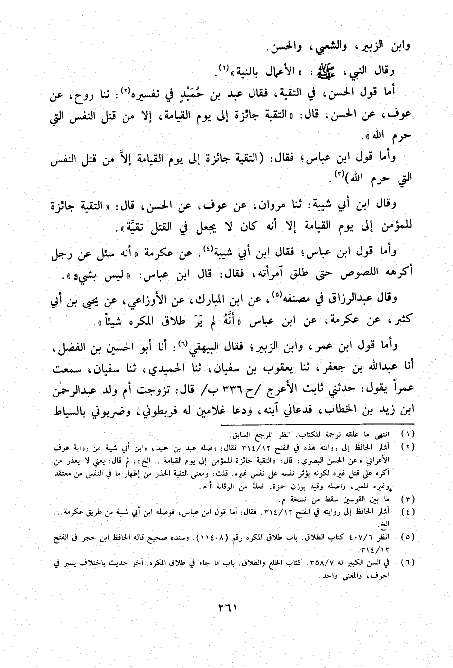 وَأما قَول ابْن عَبَّاس فَقَالَ التقية جَائِزَة إِلَى يَوْم الْقِيَامَة إِلَّا من قتل النَّفس الَّتِي حرم الله