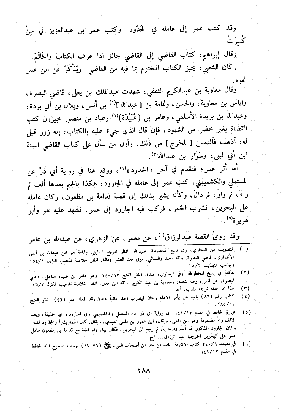 وَقد كتب عمر إِلَى عَامله فِي الْحُدُود وَكتب عمر بن عبد الْعَزِيز فِي سنّ كسرت