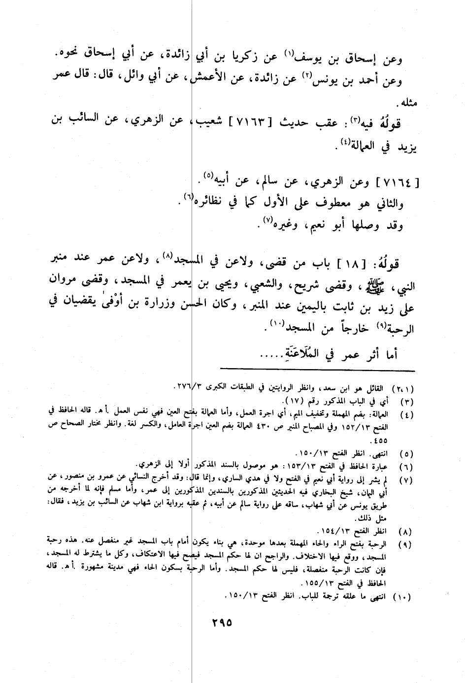 عَقِبَ حَدِيثِ 7163 شُعَيْبٍ عَنِ الزُّهْرِيِّ عَن السَّائِب بن يزِيد فِي العمالة