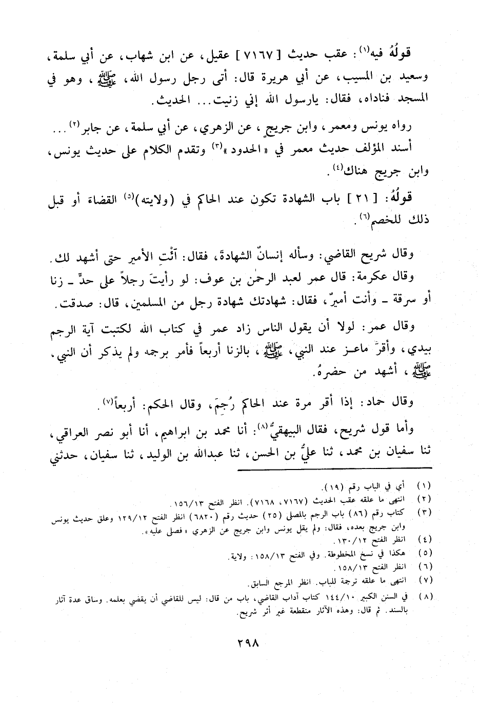 عَقِبَ حَدِيثِ 7167 عُقَيْلٍ عَن ابْن شهَاب عَن أبي سَلَمَةَ وَسَعِيدِ بْنِ الْمُسَيِّبِ عَنْ أَبِي هُرَيْرَةَ قَالَ أَتَى رَجُلٌ رَسُول الله صلى الله عَلَيْهِ وَسَلَّمَ وَهُوَ فِي الْمَسْجِدِ فَنَادَاهُ فَقَالَ يَا رَسُول الله إِنِّي زَنَيْتُ الْحَدِيثَ
