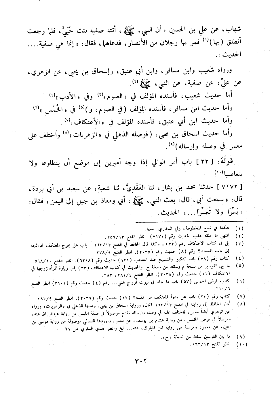 شهَاب عَن عَليّ بن الْحُسَيْن أَن النَّبِي صلى الله عَلَيْهِ وَسَلَّمَ أَتَتْهُ صَفِيَّة بنت حييّ فَلَمَّا رجعت انْطلق بهَا فَمر بهَا رجلَانِ من الْأَنْصَار فدعاهما فَقَالَ إِنَّمَا هِيَ صَفِيَّة الحَدِيث