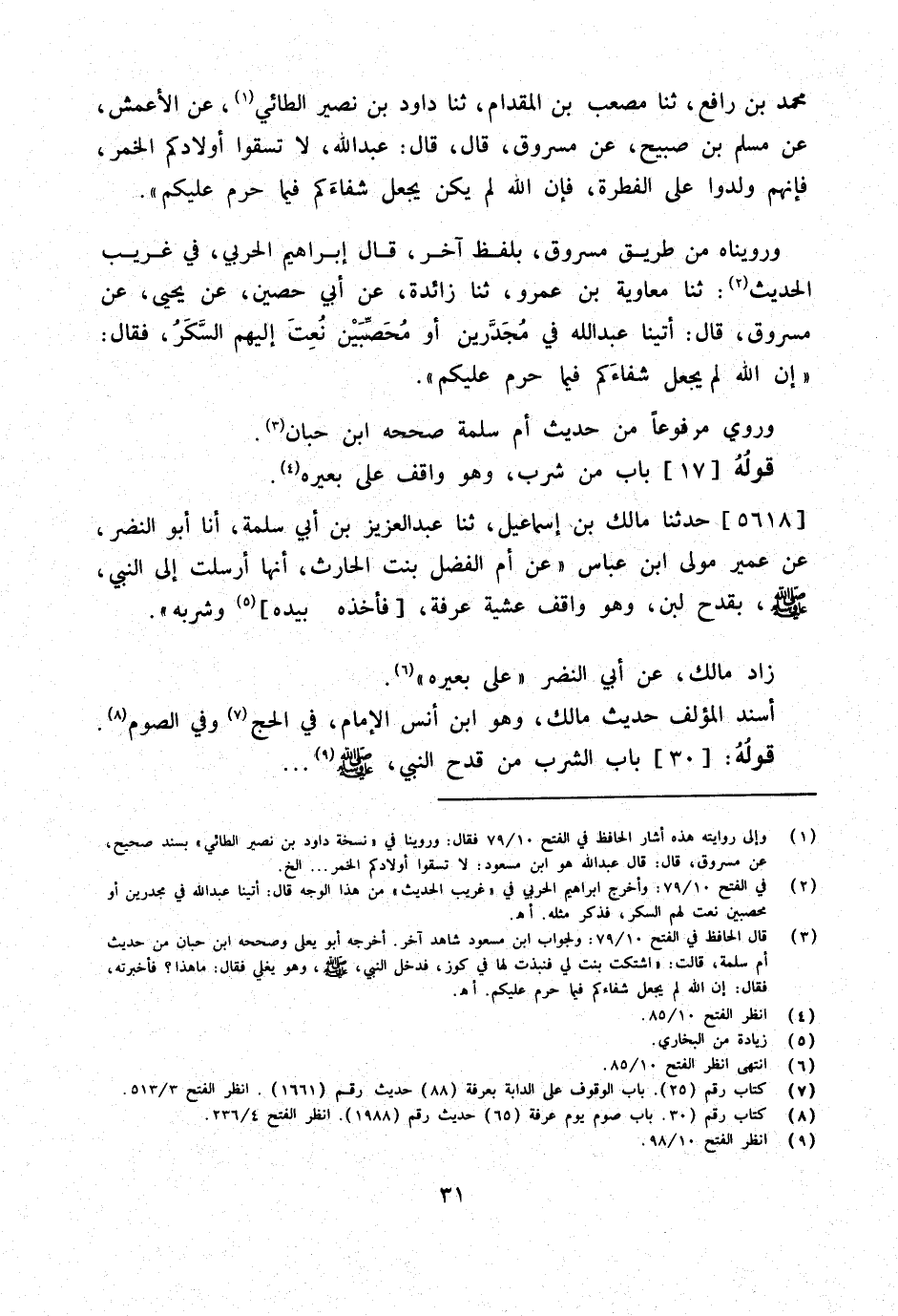 مُحَمَّد بن رَافع ثَنَا مُصعب بن الْمِقْدَام ثَنَا دَاوُد بن نُصَيْرٍ الطَّائِيُّ عَنِ الأَعْمَشِ عَنْ مُسْلِمِ بْنِ صُبَيْحٍ عَنْ مَسْرُوقٍ قَالَ قَالَ عَبْدُ اللَّهِ لَا تَسْقُوا أَوْلادَكُمُ الْخَمْرَ فَإِنَّهُمْ وُلِدُوا عَلَى الْفِطْرَةِ فَإِنَّ اللَّهَ لَمْ يَكُنْ يَجْعَلُ شِفَاءَكُمْ فِيمَا حُرِّمَ عَلَيْكُمْ