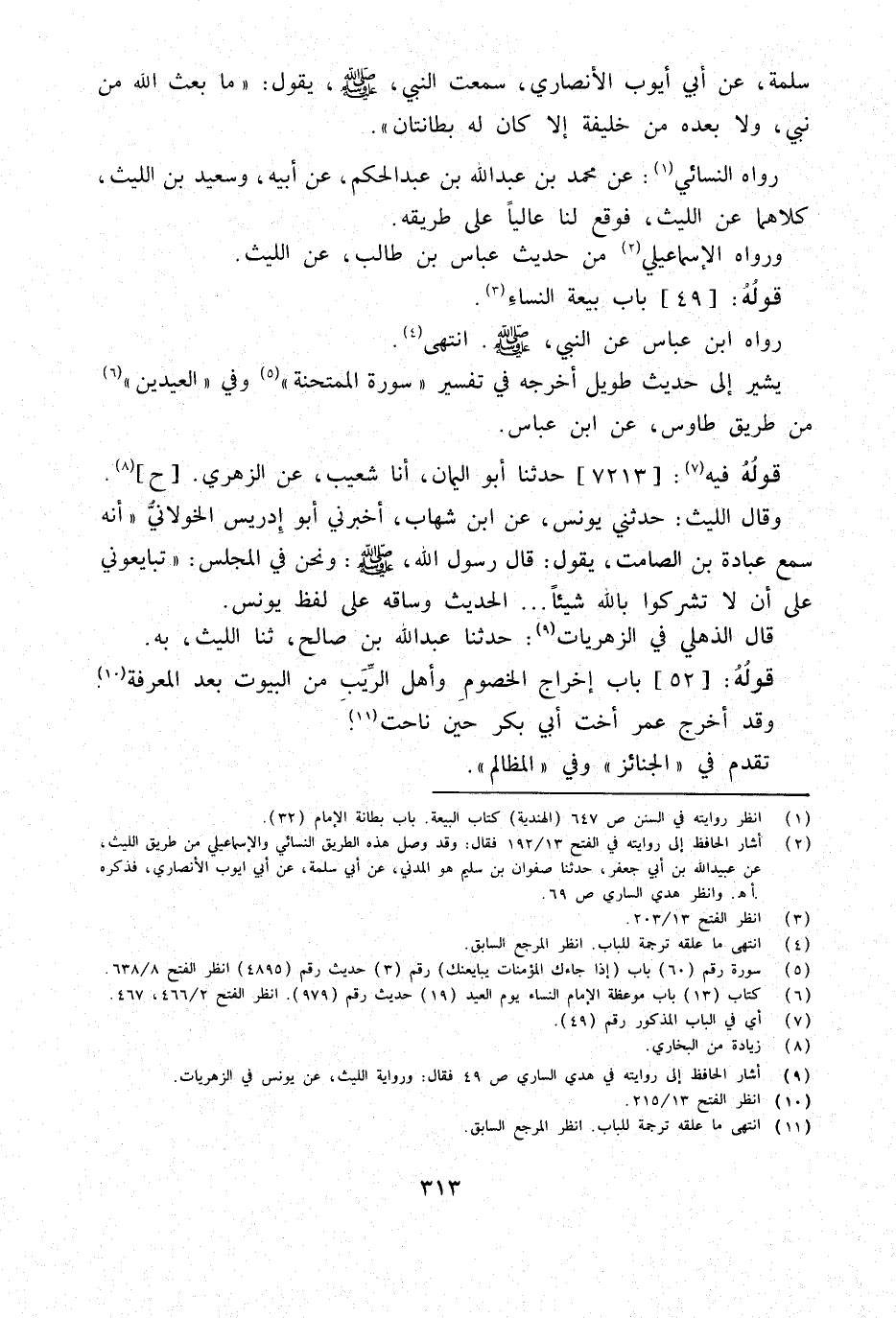 وَقَالَ اللَّيْثُ حَدَّثَنِي يُونُسُ عَنِ ابْنِ شِهَابٍ أَخْبَرَنِي أَبُو إِدْرِيسَ الْخَوْلانِيُّ أَنَّهُ سَمِعَ عُبَادَةَ بْنَ الصَّامِتِ يَقُولُ قَالَ رَسُولُ الله صلى الله عَلَيْهِ وَسلم وَنَحْنُ فِي الْمَجْلِسِ تُبَايِعُونِي عَلَى أَنْ لَا تُشْرِكُوا بِاللَّهِ شَيْئًا الحَدِيث وَسَاقه على لفظ يُونُس