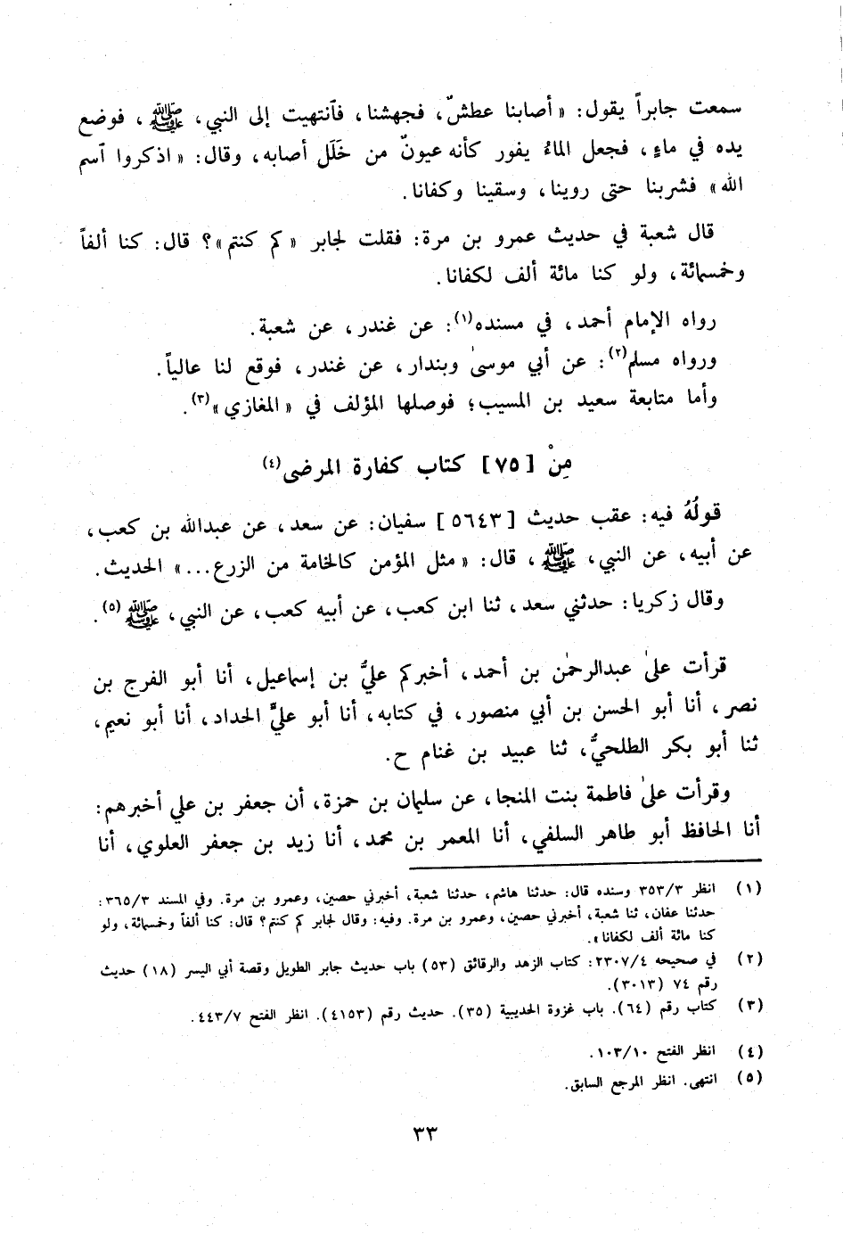 قَالَ شُعْبَةُ فِي حَدِيثِ عَمْرِو بْنِ مُرَّةَ فَقُلْتُ لِجَابِرٍ كَمْ كُنْتُمْ قَالَ كُنَّا أَلْفًا وَخَمْسمِائة وَلَوْ كُنَّا مِائَةَ أَلْفٍ لَكَفَانَا