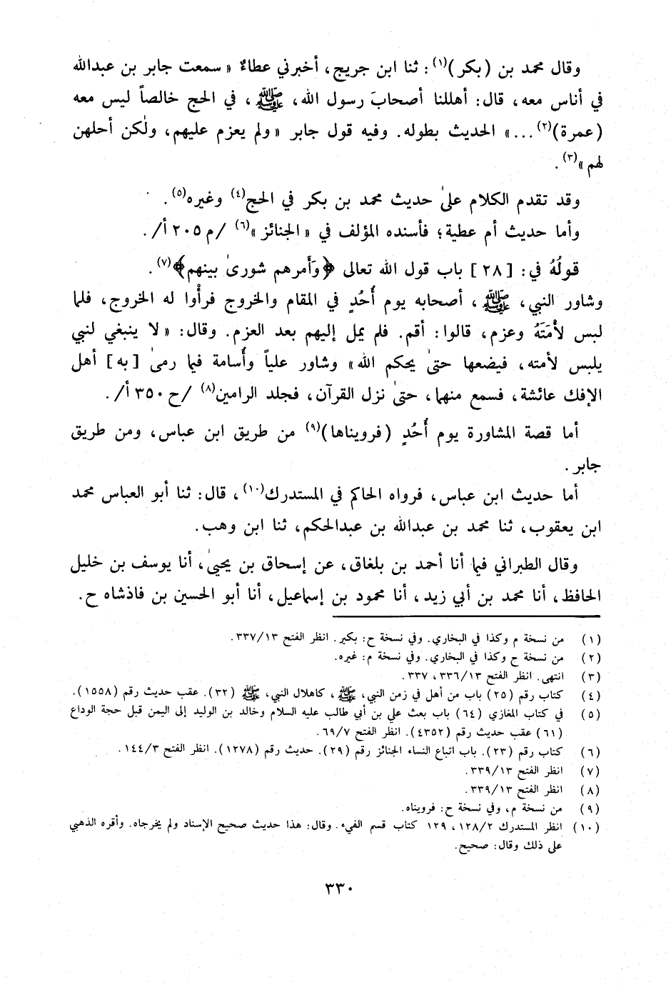 أما قصَّة الْمُشَاورَة يَوْم أحد فرويناها من طَرِيق ابْن عَبَّاس وَمن طَرِيق جَابر