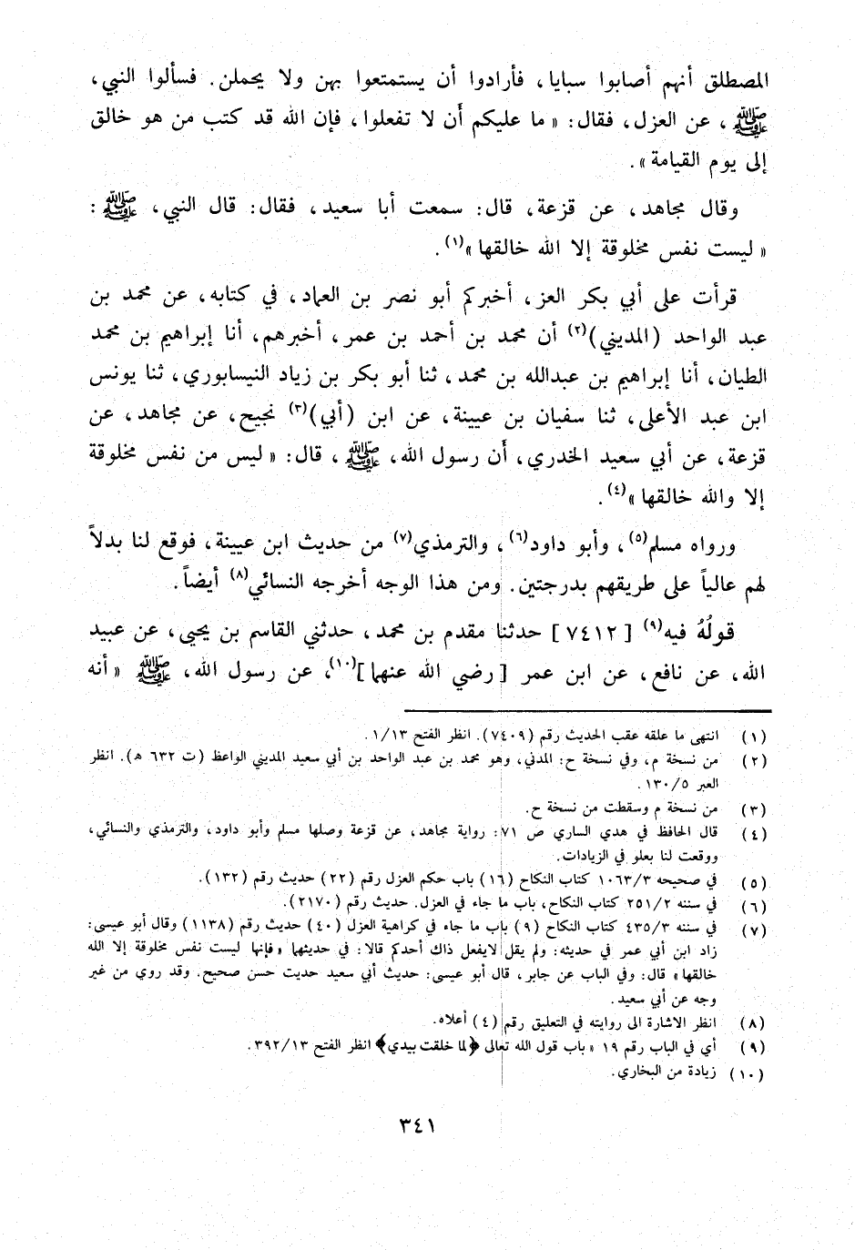 قَرَأْتُ عَلَى أَبِي بَكْرٍ الْعِزِّ أَخْبَرَكُمْ أَبُو نَصْرِ بْنُ الْعِمَادِ فِي كِتَابه عَن مُحَمَّد بن عَبْدِ الْوَاحِدِ الْمَدِينِيِّ أَنَّ مُحَمَّدَ بْنَ أَحْمَدَ بْنِ عُمَرَ أَخْبَرَهُمْ أَنا إِبْرَاهِيمُ بْنُ مُحَمَّدٍ الطَّيَّانُ أَنا إِبْرَاهِيمُ بْنُ عَبْدِ اللَّهِ بن مُحَمَّد ثَنَا أَبُو بكر بْنُ زِيَادٍ النَّيْسَابُورِيُّ ثَنَا يُونُسُ ابْن عَبْدِ الأَعْلَى ثَنَا سُفْيَانُ بْنُ عُيَيْنَة عَن ابْن أبي نجيح عَنْ مُجَاهِدٍ عَنْ قَزَعَةَ عَنْ أَبِي سَعِيدٍ الْخُدْرِيِّ أَنَّ رَسُولَ الله صلى الله عَلَيْهِ وَسلم قَالَ لَيْسَ مِنْ نَفْسٍ مَخْلُوقَةٍ إِلا وَاللَّهُ خَالِقُهَا