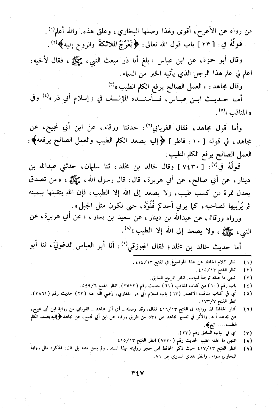 وَأما قَول مُجَاهِد فَقَالَ الْفرْيَابِيّ حَدثنَا وَرْقَاء عَن ابْن أبي نجيح عَن مُجَاهِد فِي قَوْله 10 فاطر {إِلَيْهِ يَصْعَدُ الْكَلِمُ الطَّيِّبُ وَالْعَمَلُ الصَّالح يرفعهُ} الْعَمَل الصَّالح يرفع الْكَلم الطّيب