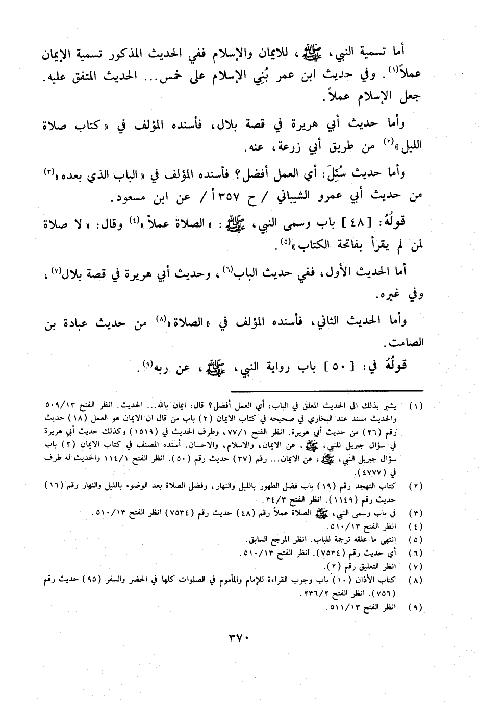 أما تَسْمِيَة النَّبِي صلى الله عَلَيْهِ وَسَلَّمَ للْإيمَان وَالْإِسْلَام فَفِي الحَدِيث الْمَذْكُور تَسْمِيَة الْإِيمَان عملا وَفِي حَدِيث ابْن عمر بني الْإِسْلَام على خمس الحَدِيث الْمُتَّفق عَلَيْهِ