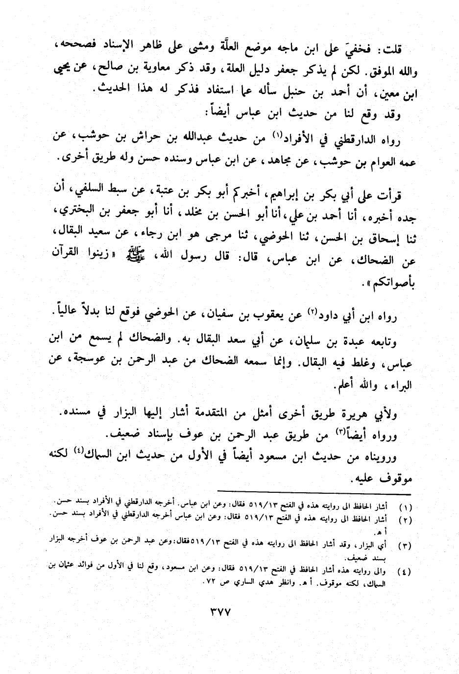 قَرَأْتُ عَلَى أَبِي بَكْرِ بْنِ إِبْرَاهِيمَ أَخْبَرَكُمْ أَبُو بَكْرِ بْنُ عُتْبَةَ عَنْ سِبْطِ السِّلَفِيِّ أَنَّ جَدَّهُ أَخْبَرَهُ أَنا أَحْمَدُ بْنُ عَلِيٍّ أَنا أَبُو الْحَسَنِ بْنُ مَخْلَدٍ أَنا أَبُو جَعْفَرِ بْنُ الْبَخْتَرِيِّ ثَنَا إِسْحَاقُ بْنُ الْحَسَنِ ثَنَا الْحَوْضِيُّ ثَنَا مُرَجَّى هُوَ ابْنُ رَجَاءٍ عَنْ سَعِيدٍ الْبَقَّالِ عَنِ الضَّحَّاكِ عَنِ ابْنِ عَبَّاسٍ قَالَ قَالَ رَسُولُ الله صلى الله عَلَيْهِ وَسلم زَيِّنُوا الْقُرْآنَ بِأَصْوَاتِكُمْ