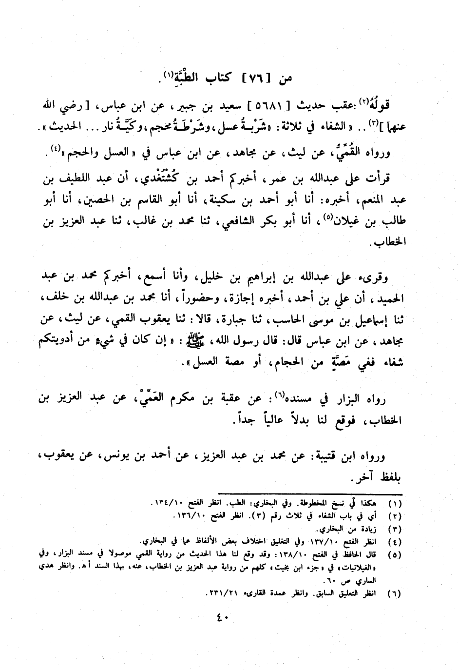 عقب حَدِيث 5681 سعيد بن جُبَير عَن ابْن عَبَّاس رَضِي الله عَنْهُمَا الشِّفَاء فِي ثَلَاثَة شربة عسل وشرطة محجم وكية نَار الحَدِيث