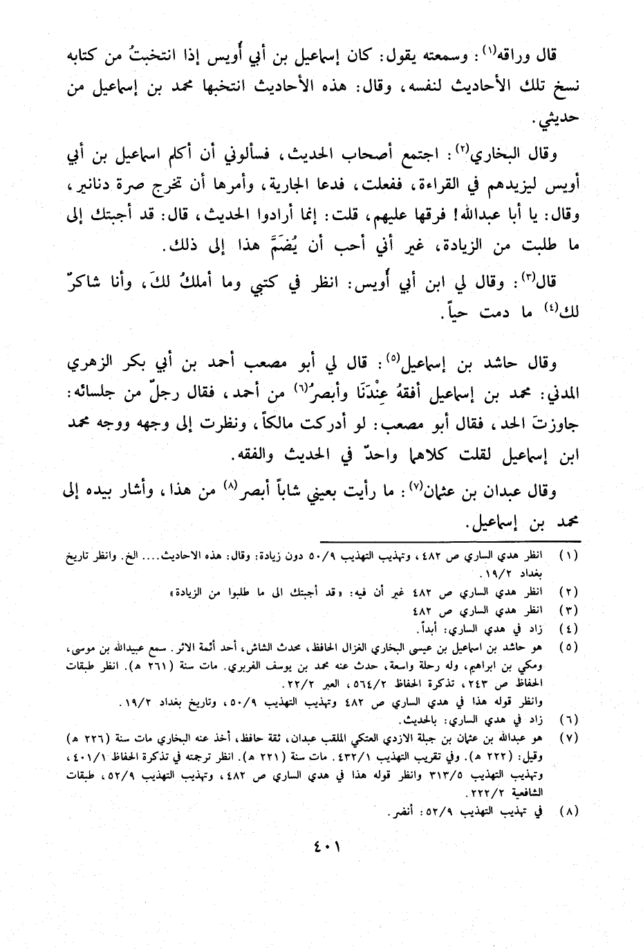 وَقَالَ وراقه وسمعته يَقُول كَانَ إِسْمَاعِيل بن أبي أويس إِذا انتخبت من كِتَابه نسخ تِلْكَ الْأَحَادِيث لنَفسِهِ وَقَالَ هَذِه الْأَحَادِيث انتخبها مُحَمَّد بن إِسْمَاعِيل من حَدِيثي