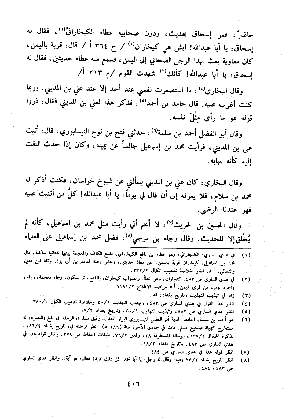 حَاضر فَمر إِسْحَاق بِحَدِيث وَدون صحابيه عَطاء الكيخاراني فَقَالَ لَهُ إِسْحَاق يَا أَبَا عبد الله إيش هِيَ كيخاران ح 364 أقَالَ قَرْيَة بِالْيمن كَانَ مُعَاوِيَة بعث بِهَذَا الرجل الصَّحَابِيّ إِلَى الْيمن فَسمع مِنْهُ عَطاء حديثين فَقَالَ لَهُ إِسْحَاق يَا أَبَا عبد الله كَأَنَّك شهِدت الْقَوْم م 213 أ