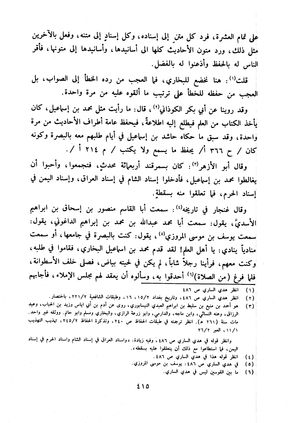 وَقد روينَا عَن أبي بكر الكوذاني قَالَ مَا رَأَيْت مثل مُحَمَّد بن إِسْمَاعِيل كَانَ يَأْخُذ الْكتاب من الْعلم فَيطلع إِلَيْهِ اطلاعة فيحفظ عَامَّة أَطْرَاف الْأَحَادِيث من مرّة وَاحِدَة وَقد سبق مَا حَكَاهُ حاشد بن إِسْمَاعِيل فِي أَيَّام طَلَبهمْ مَعَه بِالْبَصْرَةِ وَكَونه كَانَ ح 366 أيحفظ مَا يسمع وَلَا يكْتب م 214 أ