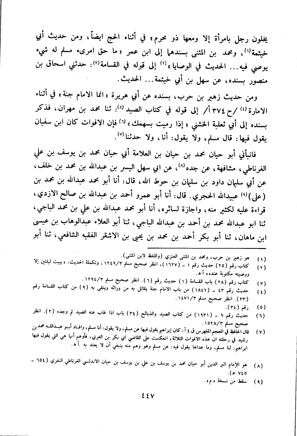 وَمن حَدِيث زُهَيْر بن حَرْب بِسَنَدِهِ عَن أبي هُرَيْرَة إِنَّمَا الإِمَام جنَّة فِي أثْنَاء الْإِمَارَة ح 374 أإِلَى قَوْله فِي كتاب الصَّيْد ثَنَا مُحَمَّد بن مهْرَان فَذكر بِسَنَدِهِ إِلَى أبي ثَعْلَبَة الْخُشَنِي إِذا رميت بسهمك فَإِن الأفوات كَانَ ابْن سُفْيَان يَقُول فِيهَا قَالَ مُسلم وَلَا يَقُول أَنا وَلَا حَدثنَا