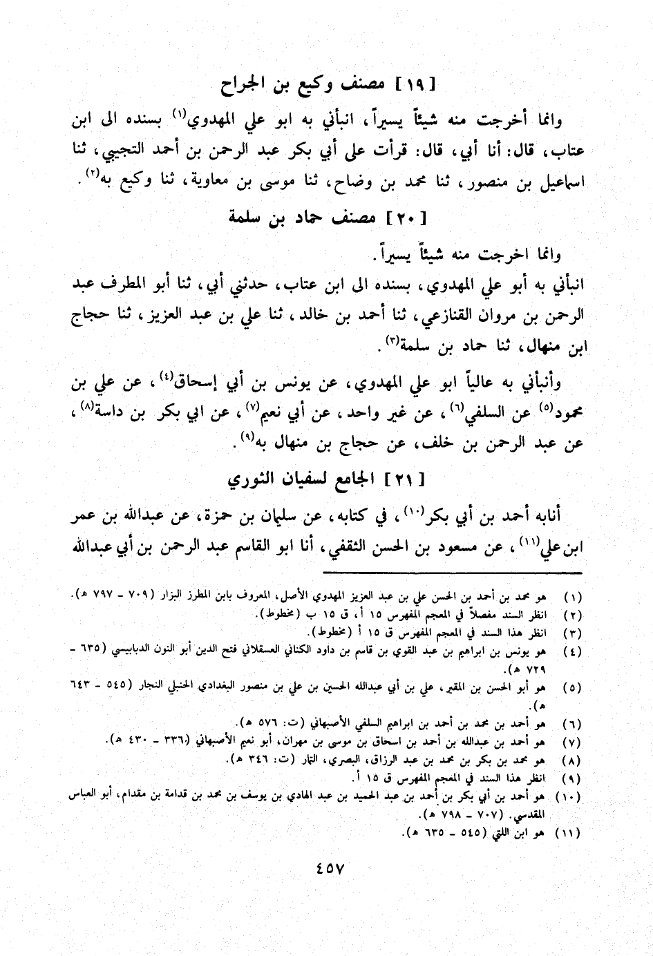 وَإِنَّمَا أخرجت مِنْهُ شَيْئا يَسِيرا أنبأني بِهِ أَبُو عَليّ الْمَهْدَوِيّ بِسَنَدِهِ إِلَى ابْن عتاب قَالَ أَنا أبي قَالَ قَرَأت على أبي بكر عبد الرَّحْمَن بن أَحْمد التجِيبِي ثَنَا إِسْمَاعِيل بن مَنْصُور ثَنَا مُحَمَّد بن وضاح ثَنَا مُوسَى بن مُعَاوِيَة ثَنَا وَكِيع بِهِ