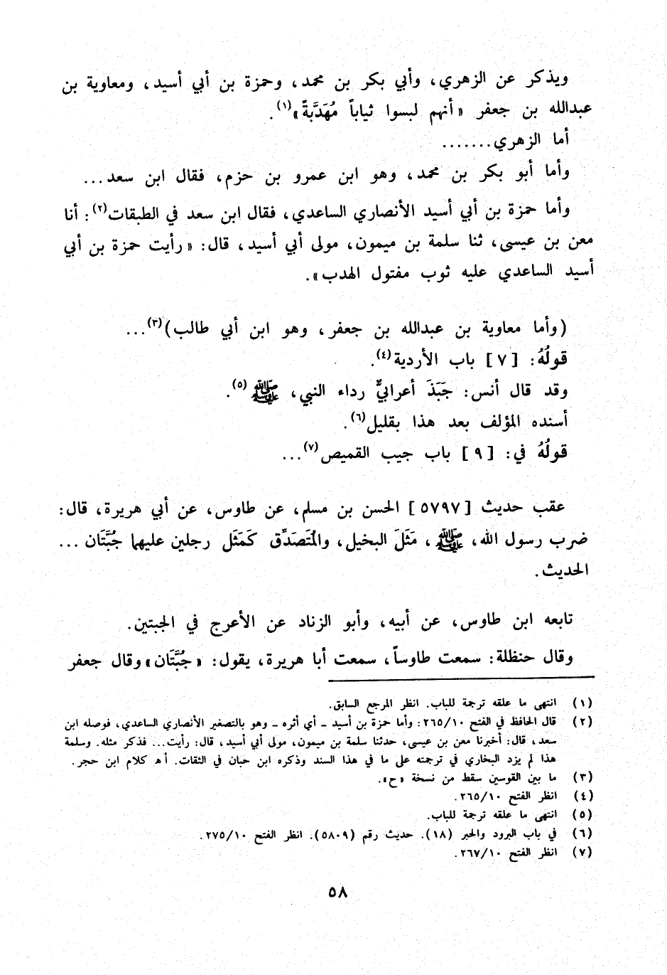 وَيذكر عَن الزُّهْرِيّ وَأبي بكر بن مُحَمَّد وَحَمْزَة بن أبي أسيد وَمُعَاوِيَة بن عبد الله بن جَعْفَر أَنهم لبسوا ثيابًا مهدبة