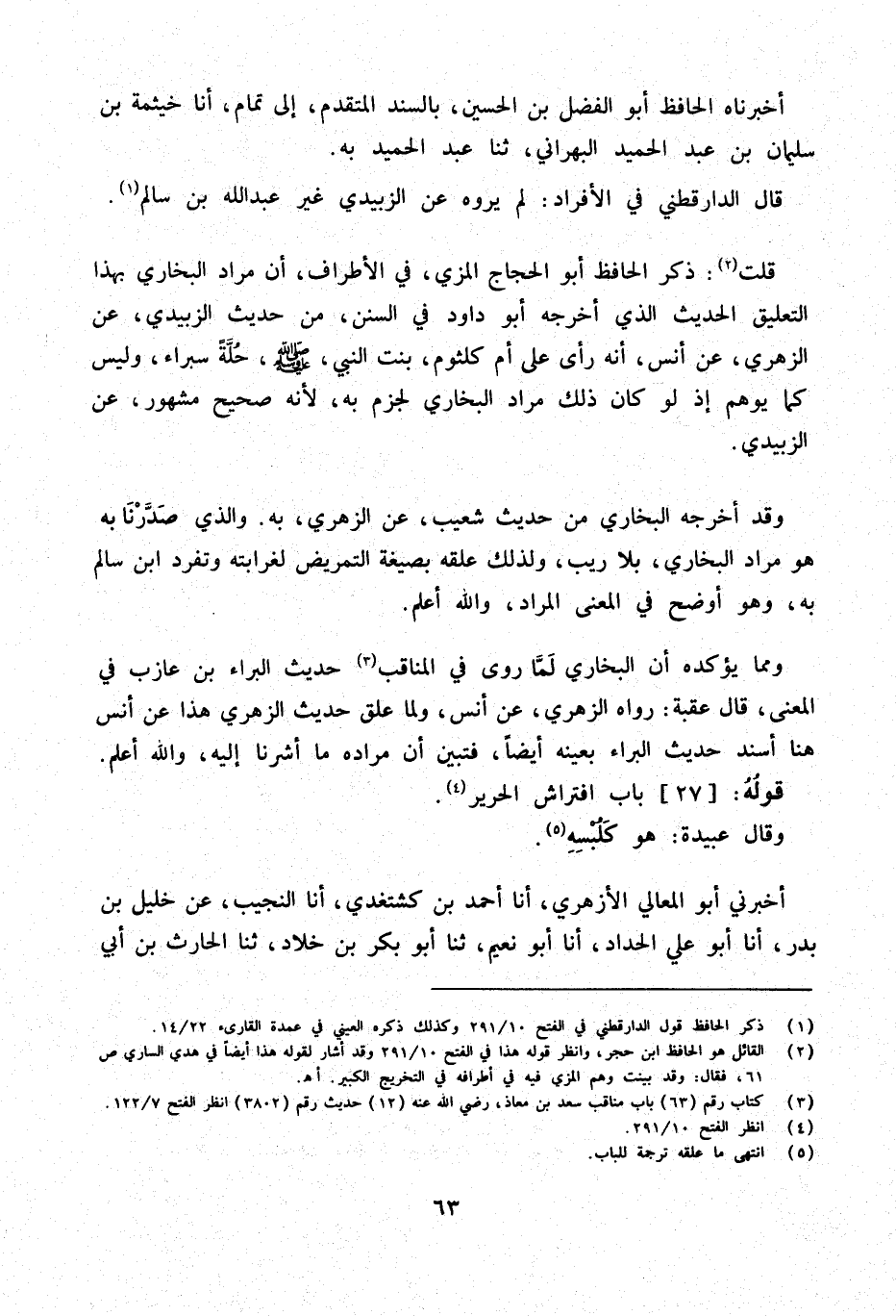 قلت ذكر الْحَافِظ أَبُو الْحجَّاج الْمزي فِي الْأَطْرَاف أَن مُرَاد البُخَارِيّ بِهَذَا التَّعْلِيق الحَدِيث الَّذِي أخرجه أَبُو دَاوُد فِي السّنَن من حَدِيث الزبيدِيّ عَن الزُّهْرِيّ عَن أنس أَنه رأى على أم كُلْثُوم بنت النَّبِي صلى الله عَلَيْهِ وَسَلَّمَ حلَّة سبراء وَلَيْسَ كَمَا يُوهم إِذْ لَو كَانَ ذَلِك مُرَاد البُخَارِيّ لجزم بِهِ لِأَنَّهُ صَحِيح مَشْهُور عَن الزبيدِيّ