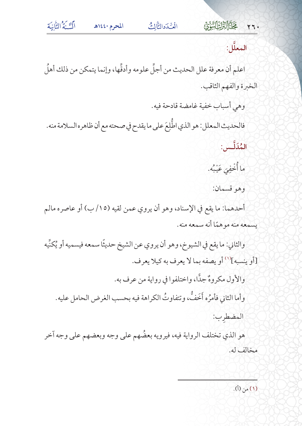 اعلم أن معرفة علل الحديث من أجلّ علومه وأدقّها، وإنما يتمكن من ذلك أهل الخبرة والفهم الثاقب.
