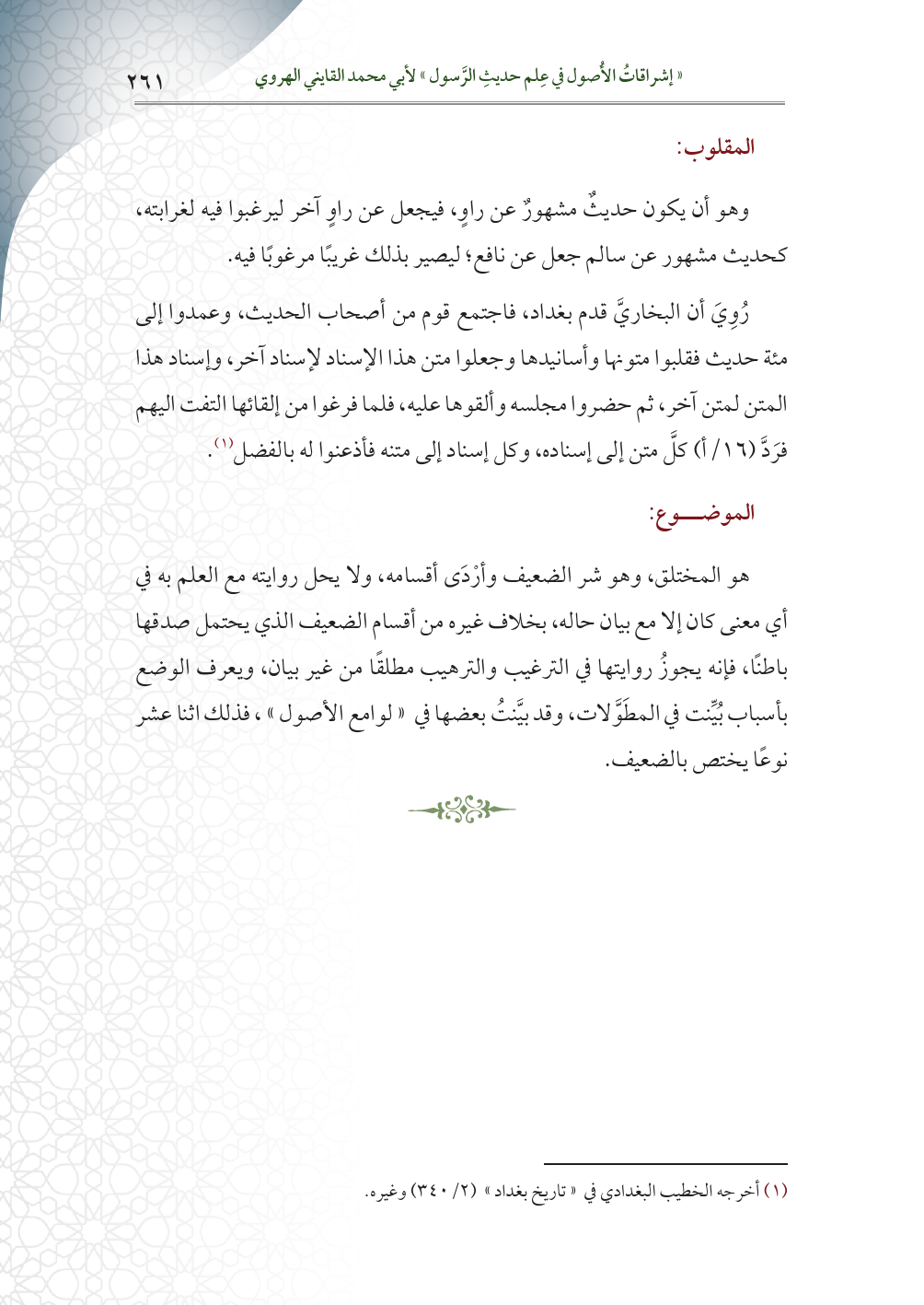 (¬١) - أخرجه الخطيب البغدادي في "تاريخ بغداد" (٢/ ٣٤٠) وغيره.