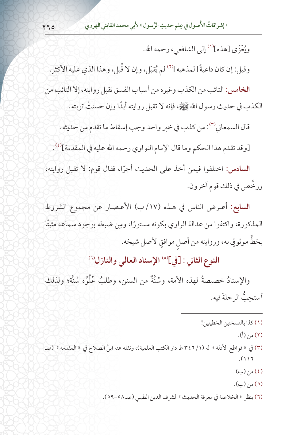 (¬٦) - ينظر "الخلاصة في معرفة الحديث" لشرف الدين الطيبي (صـ ٥٨ - ٥٩)