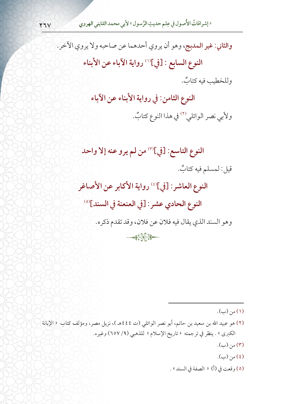 (¬٢) - هو عبيد الله بن سعيد بن حاتم، أبو نصر الوائلي (تـ ٤٤٤ هـ)، نزيل مصر، ومؤلف كتاب "الإبانة الكبرى".