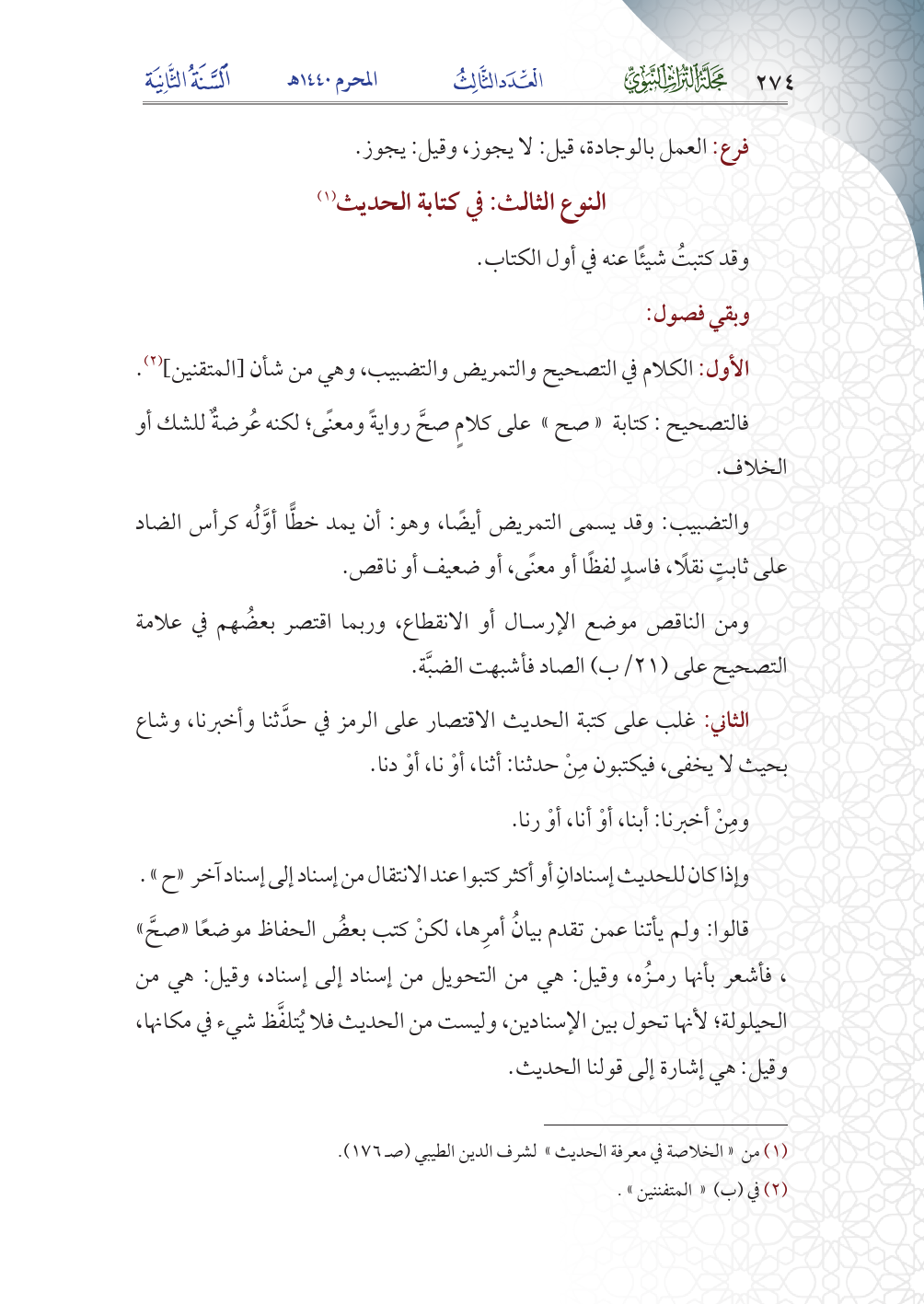 (¬١) - من "الخلاصة في معرفة الحديث" لشرف الدين الطيبي (صـ ١٧٦)
