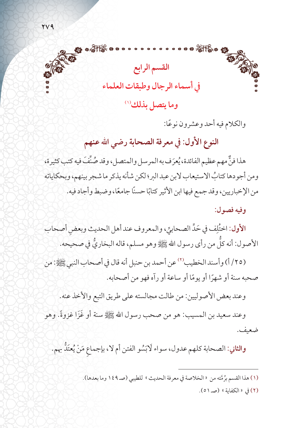 (¬١) هذا القسم برُمَّته من "الخلاصة في معرفة الحديث" للطيبي (صـ ١٤٩ - فما بعدها).