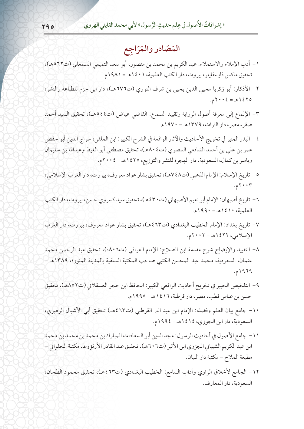 • الإلماع إلى معرفة أصول الرواية وتقييد السماع، تأليف القاضي عياض (ت ٥٤٤ هـ)، تحقيق السيد أحمد صقر، مصر، دار التراث، ١٣٧٩ هـ- ١٩٧٠ م.