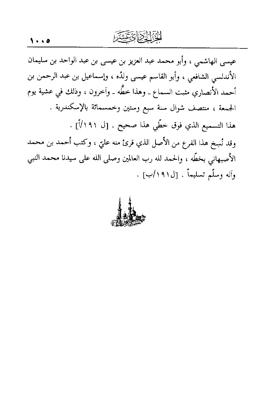 هذا التسميع الذي فوق خطّي هذا صحيح. [ل 191/أ] .