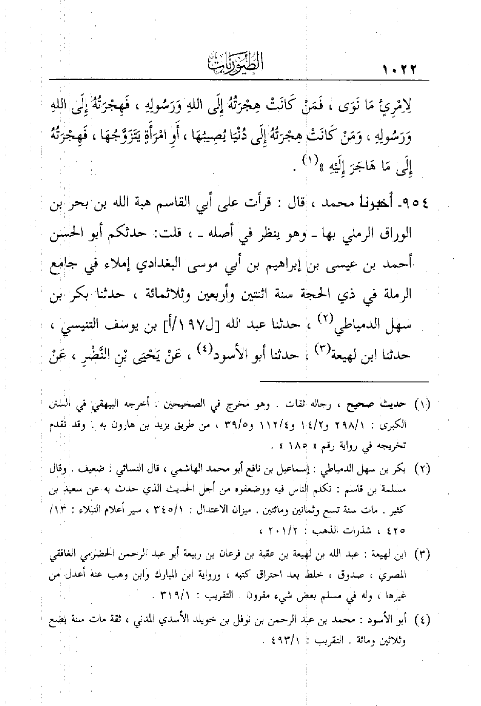 954 - أَخْبَرَنَا مُحَمَّدٌ، قَالَ: قَرَأْتُ عَلَى أَبِي الْقَاسِمِ هِبَةِ اللَّهِ بْنِ بَحْرِ بْنِ الْوَرَّاقِ الرَّمْلِيِّ بِهَا ـ وَهُوَ يَنْظُرُ فِي أَصْلِهِ ـ، قُلْتُ: حَدَّثَكُمْ أَبُو الْحَسَنِ أَحْمَدُ بْنُ عِيسَى بْنِ إِبْرَاهِيمَ بْنِ أَبِي مُوسَى الْبَغْدَادِيُّ إِمْلاءً فِي جَامِعِ الرَّمْلَةِ فِي ذِي الْحِجَّةِ سَنَةَ اثنتين وأربعين وثلاثمائة، حَدَّثَنَا بَكْرُ بْنُ سَهْلٍ الدِّمْيَاطِيُّ (¬2)