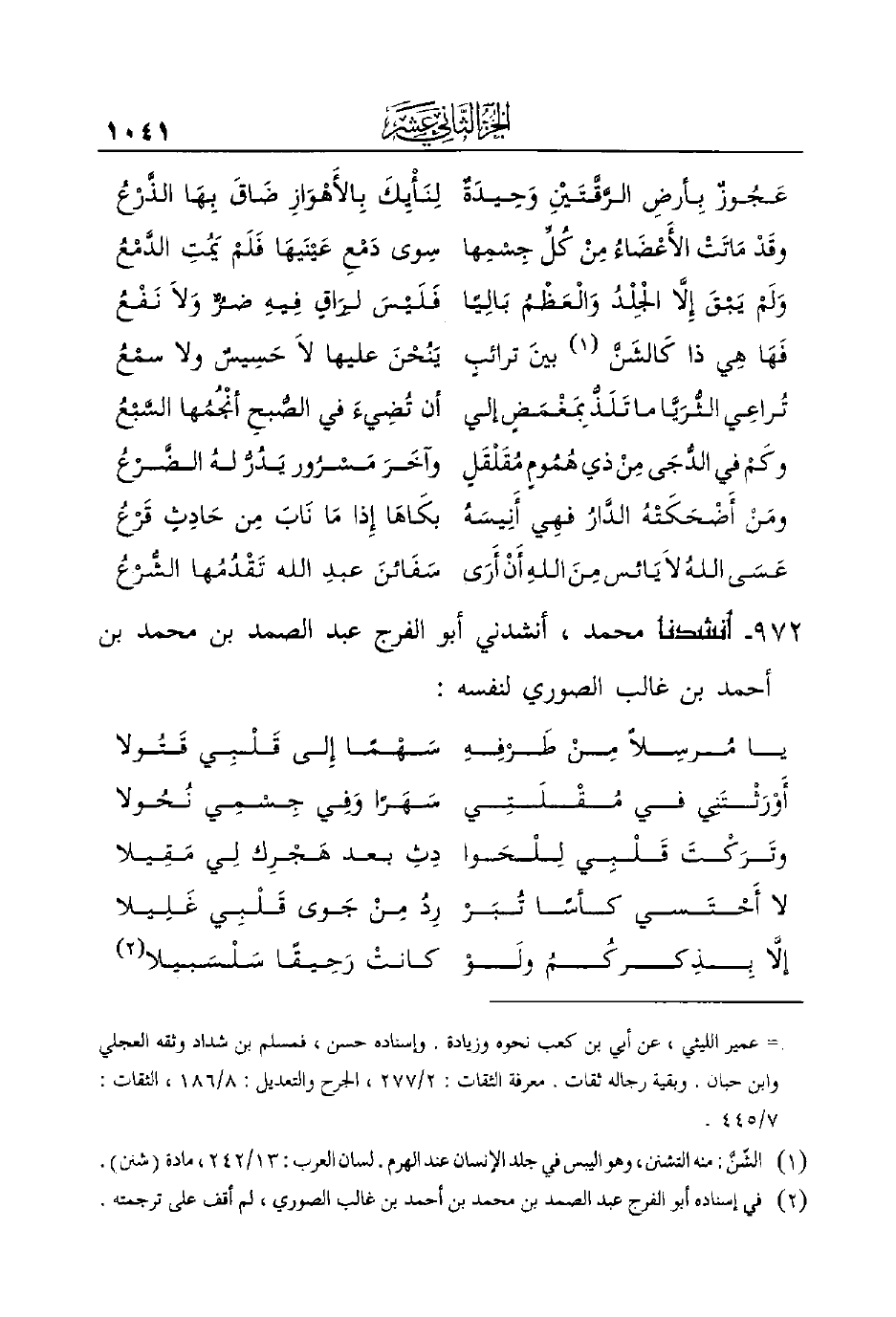 972 - أنشدنا محمد، أنشدني أبو الفرج عبد الصمد بن محمد بن أحمد ابن غالب الصوري لنفسه: