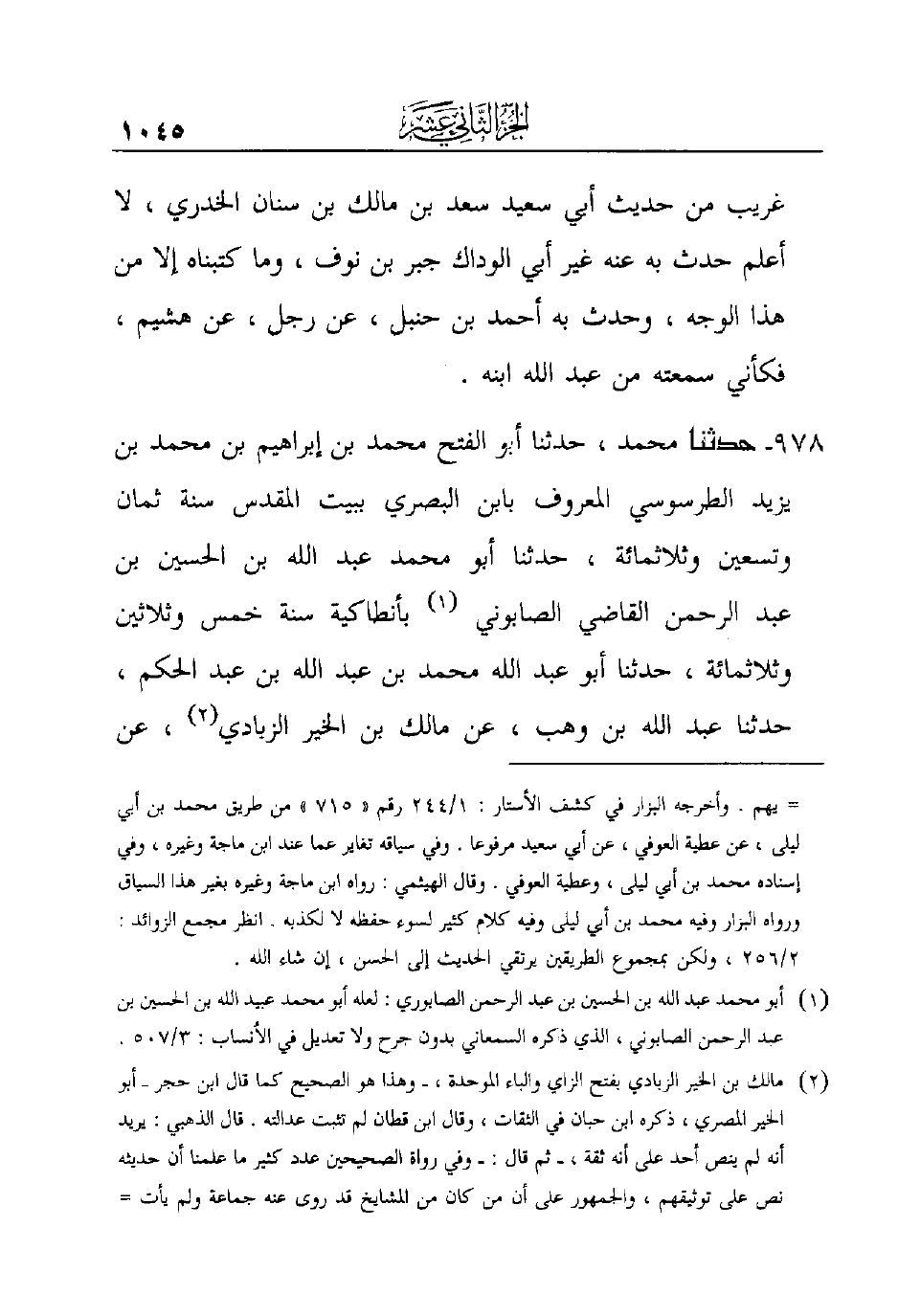 (¬1) أَبُو مُحَمَّدٍ عَبْدُ اللَّهِ بْنُ الحسين بن عبد الرحمن الصابوري: لعله أبو محمد عبيد اللَّهِ بْنُ الْحُسَيْنِ بْنِ عَبْدِ الرحمن الصابوني، الذي ذكره السمعاني بدون جرح ولا تعديل في الأنساب: 3/507.