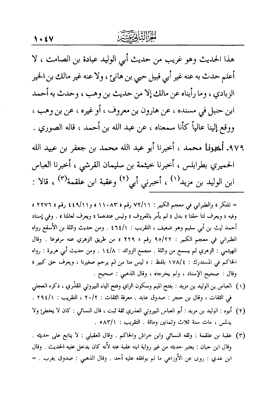 (¬2) أبوه: الوليد بن مزيد: أبو العباس البيروتي العذري ثقة ثبت، قال النسائي: كان لا يخطئ ولا يدلس، مات سنة ثلاث وثمانين ومائة. التقريب: 1/583.