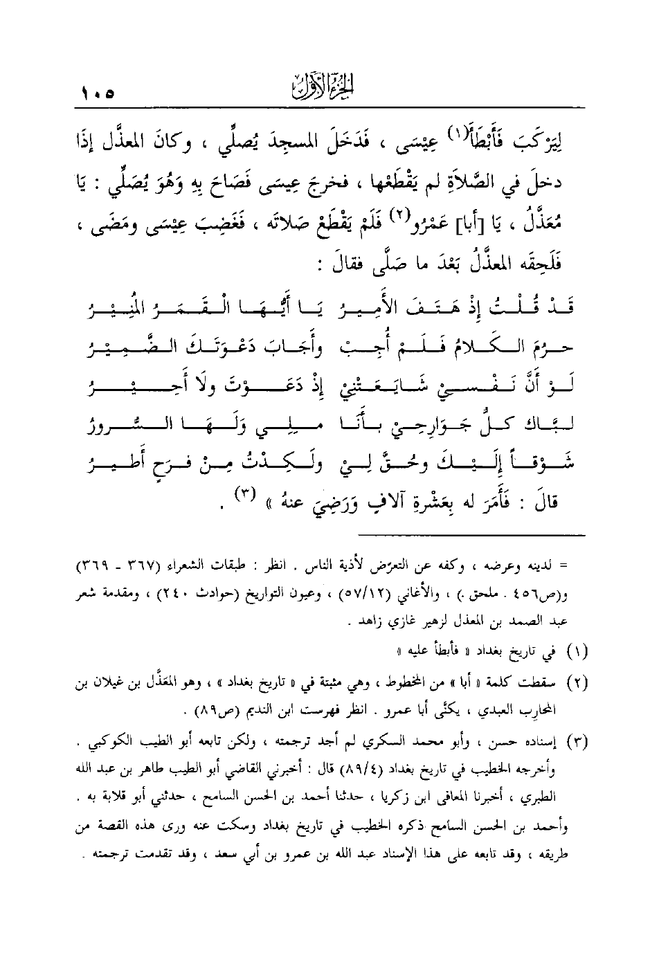 وأخرجه الخطيب في تاريخ بغداد (4/89) قال: أخبرني القاضي أبو الطيب طاهر بن عبد الله الطبري، أخبرنا المعافى