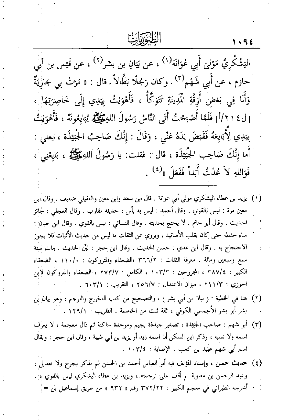 (¬2) هنا في الخطية: (بيان بن أبي بشر) ، والتصحيح من كتب التخريج والترجم، وهو بيان بن بشر أبو بشر الأحمسي الكوفي، ثقة ثبت من الخامسة. التقريب: 1/129.
