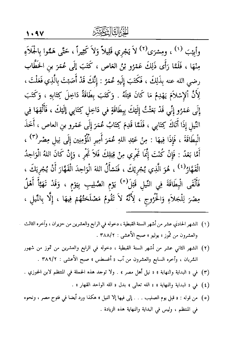 (¬5) من قوله: ((قبل يوم الصليب ... إلى فيها إلا النيل)) هكذا ورد أيضا في فتوح مصر، ونحوه في المنتظم، وليس في البداية والنهاية هذه الزيادة.