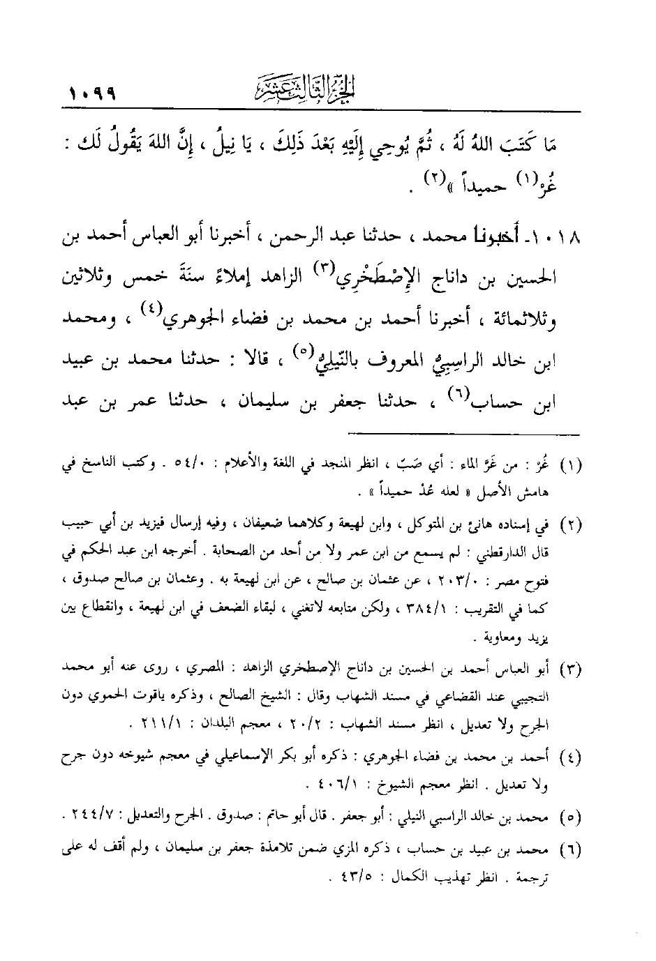 1018 - أَخْبَرَنَا مُحَمَّدٌ، حَدَّثَنَا عَبْدُ الرَّحْمَنِ، أخبرنا أبو العباس أحمد بن الحسين بن داناج الإِصْطَخْرِي (¬3) الزاهد إملاء سنَةَ خمس وثلاثين وثلاثمائة، أَخْبَرَنَا أَحْمَدُ بْنُ مُحَمَّدِ بْنِ فضاء الجوهري (¬4) ، ومحمد بن خالد الراسِبِيُّ المعروف بالنّيلِيُّ (¬5) ، قالا: حدثنا محمد بن عبيد ابن حساب (¬6)