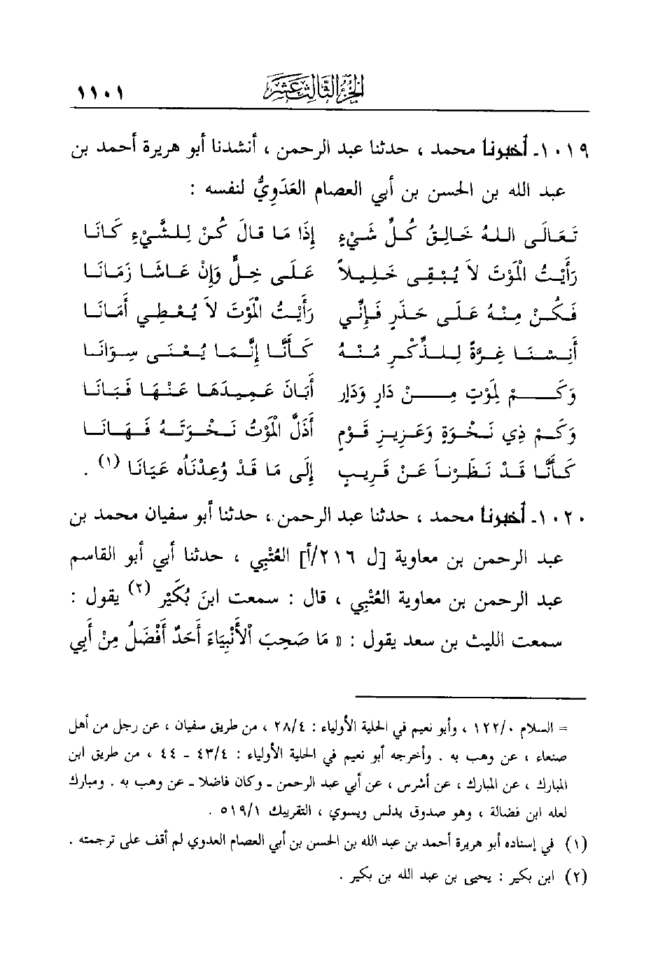 1019 - أَخْبَرَنَا مُحَمَّدٌ، حَدَّثَنَا عَبْدُ الرَّحْمَنِ، أنشدنا أبو هريرة أحمد بن عبد الله ابن الحسن بن أبي العصام العَدَوِيُّ لنفسه: