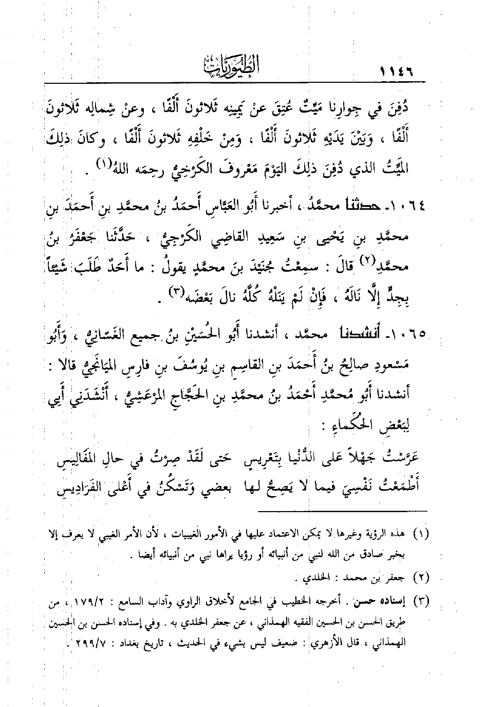 أخرجه الخطيب في الجامع لأخلاق الراوي وآداب السامع: 2/179، من طريق الحسن بن الحسين الفقيه الهمذاني، عن جعفر الخلدي به.