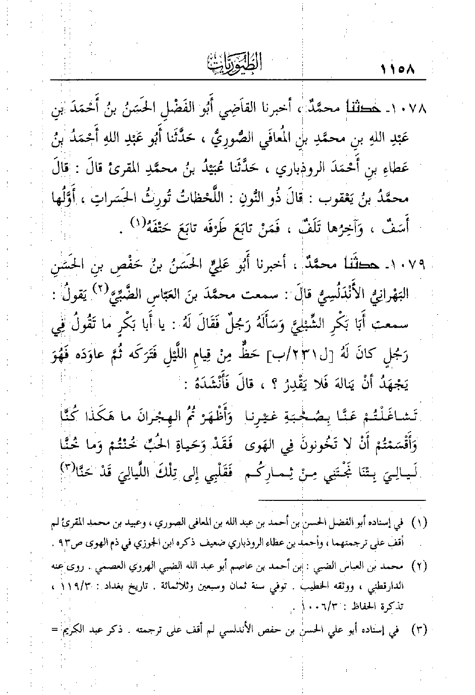 (¬2) محمد بن العباس الضبي: بن أحمد بن عاصم أبو عبد الله الضبي الهروي العصمي. روى عنه الدارقطني، ووثقه الخطيب. توفي سنة ثمان وسبعين وثلاثمائة. تاريخ بغداد: 3/119، تذكرة الحفاظ: 3/1006.