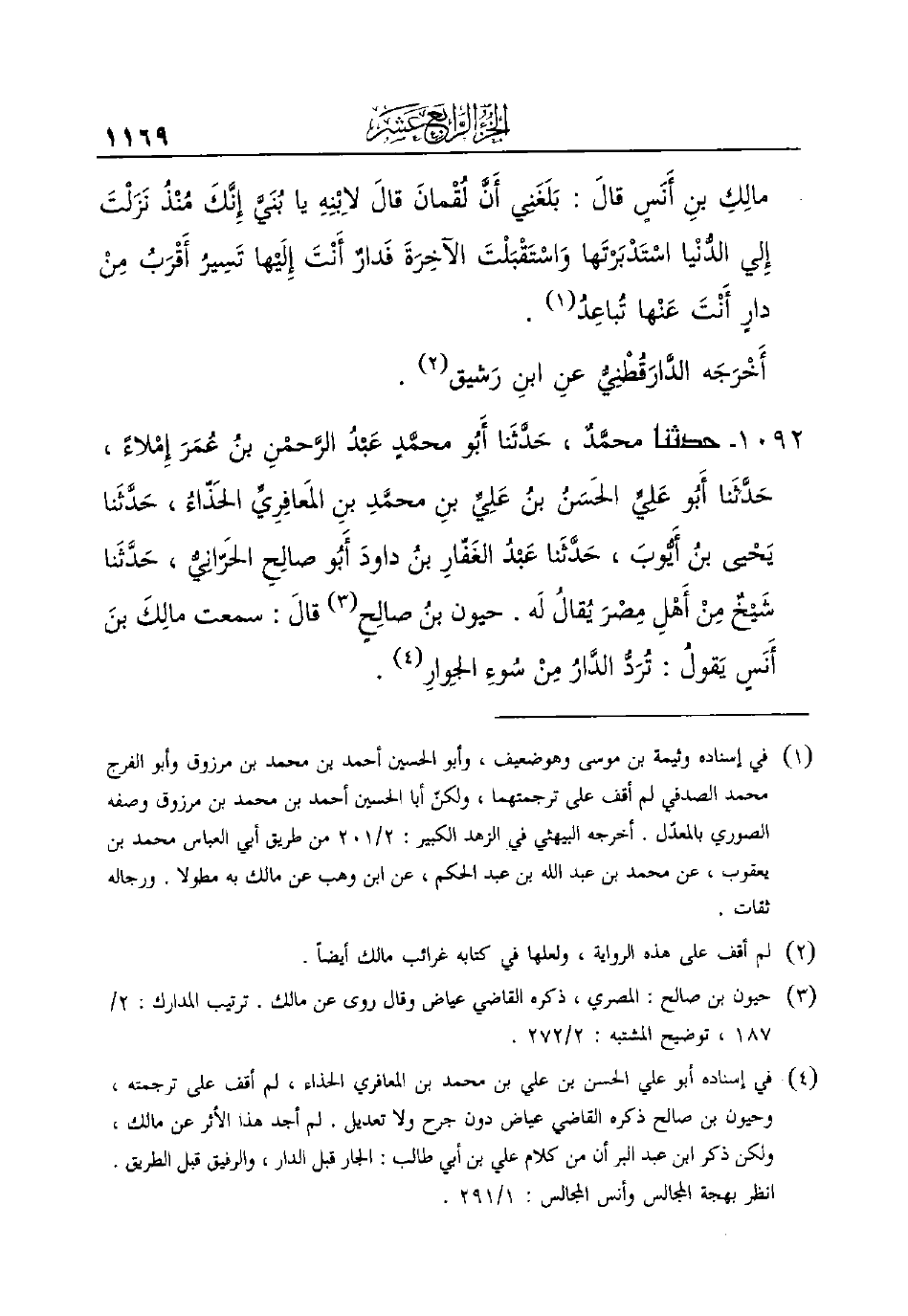 1092 - حدثنا محمَّدٌ، حَدَّثَنا أَبُو محمَّدٍ عَبْدُ الرَّحمْنِ بنُ عُمَرَ إِمْلاءً، حَدَّثَنا أَبُو عَلِيِّ الحَسَنُ ابنُ عَلِيِّ بنِ محمَّدِ بنِ المَعافِرِيِّ الحَذّاءُ، حَدَّثَنا يَحْيى بنُ أَيُّوبَ، حَدَّثَنا عَبْدُ الغَفّارِ بنُ داودَ