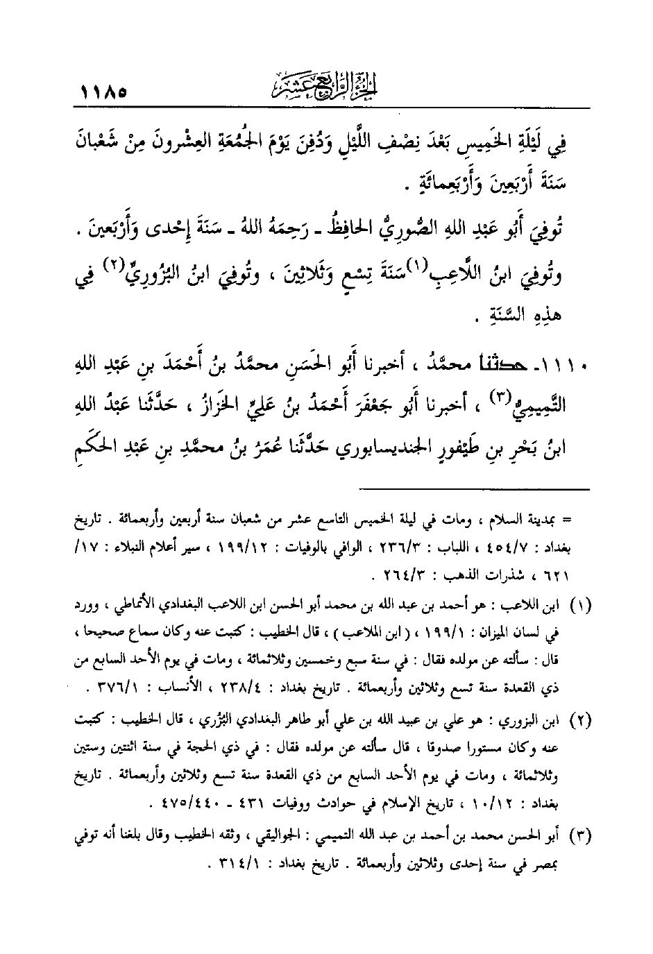 وتُوفِيَ ابنُ البُزُورِيِّ (¬2) فِي هذِهِ السَّنَةِ.