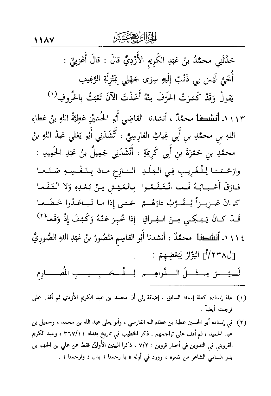 (¬1) علة إسناده كعلة إسناد السابق، إضافة إلى أن محمد بن عبد الكريم الأزدي لم أقف على ترجمته أيضاً.
