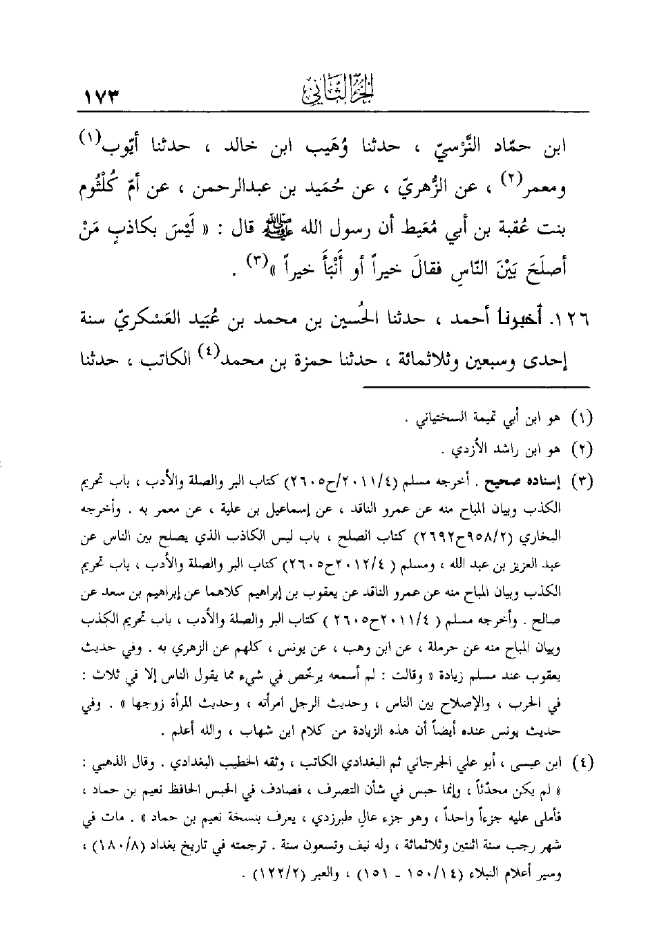 126 - أَخْبَرَنَا أَحْمَدُ، حَدَّثَنَا الحُسين بن محمد بن عُبَيد العَسْكريّ سَنَةَ إِحْدَى وَسَبْعِينَ وَثَلاثِمِائَةٍ، حَدَّثَنَا حَمْزَةُ بْنُ مُحَمَّدٍ (¬4) الْكَاتِبُ، حَدَّثَنَا