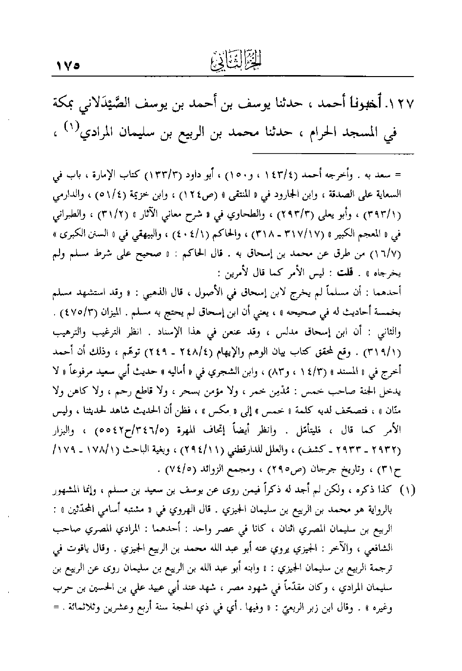 127 - أَخْبَرَنَا أَحْمَدُ، حَدَّثَنَا يُوسُفُ بْنُ أَحْمَدَ بْنِ يُوسُفَ الصَّيْدَلاني بِمَكَّةَ فِي الْمَسْجِدِ الْحَرَامِ، حَدَّثَنَا مُحَمَّدُ بْنُ الرَّبِيعِ بْنِ سُلَيْمَانَ الْمُرَادِيُّ (¬1) ،