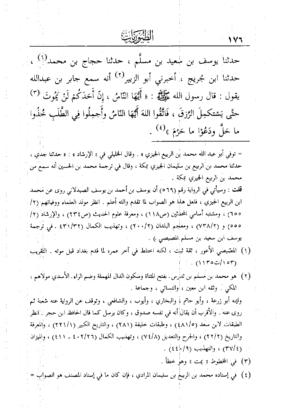 قَالَ رَسُولُ اللَّهِ صَلَّى اللَّهُ عَلَيْهِ وَسَلَّمَ: ((أَيُّهَا النّاسُ، إِنّ أَحَدَكُمْ لَنْ يَمُوتَ (¬3) حتَّى يَسْتكمِلَ الرِّزقَ، فَاتَّقُوا اللهَ أَيُّهَا النّاسُ وأَجمِلُوا فِي الطَّلَبِ خُذُوا مَا حَلَّ ودَعُوْا مَا حَرُمَ)) (¬4)